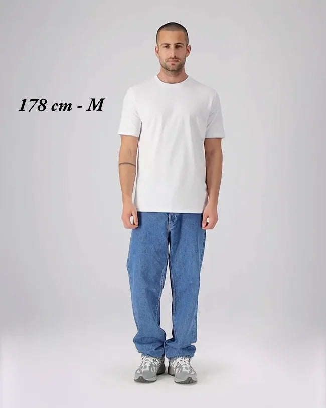 - Il fit medio unisex la rende versatile e comoda: né troppo larga, né troppo aderente, con una caduta morbida sotto la vita.